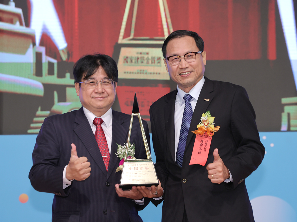 - 2023/10/25中鼎集團萬鼎打造新北最大全智慧化立體停車場 榮獲國家建築金質獎全國首獎最高殊榮第25屆「國家建築金質獎」揭曉,中鼎集團旗下萬鼎公司承攬「新北市新莊區新莊運動公園地下停車場新建統包工程」,以專業的智能和綠色技術,成功協助新北市政府完成新北市規模最大的全智慧化立體停車場,落實公園城市政策。優異的工程服務品質,不僅榮獲國家建築金質獎公共工程類肯定,更勇奪全國首獎最高殊榮。萬鼎陳福成總經理代表出席,接受立法院游錫堃院長與內政部國土管理署吳欣修署長頒獎表揚。