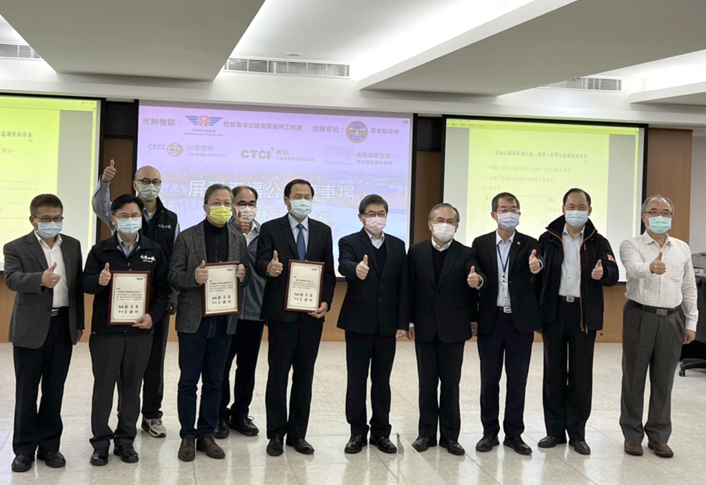 - 2022/02/14CTCI REI Receives a Certificate of Appreciation from the Executive Yuan and Ministry of Transportation & Communications for Excellence in Xingfu Park Parking Garage EPC Project in Pingtung CountyCTCI REI has been conferred a certificate of appreciation from the Executive Yuan and Ministry of Transportation & Communications for engineering excellence and superior occupational HSE management in Xingfu Park Parking Garage EPC Project in Pingtung County.