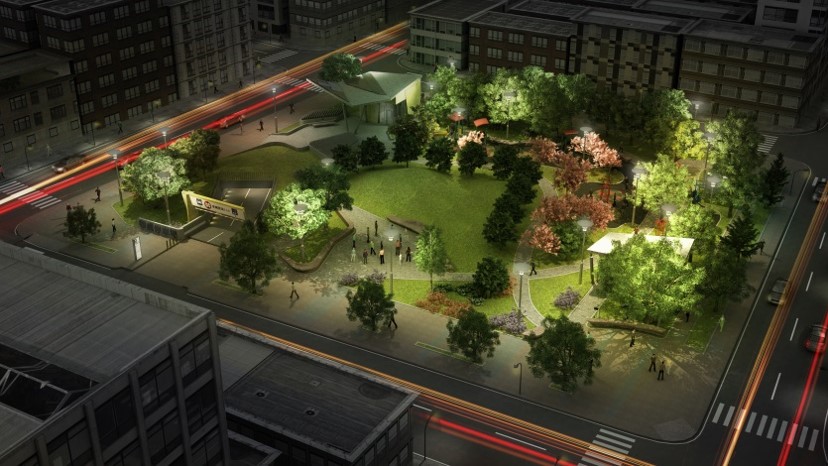 • 全球首座挑高7.5公尺無柱遮蔽式廣場